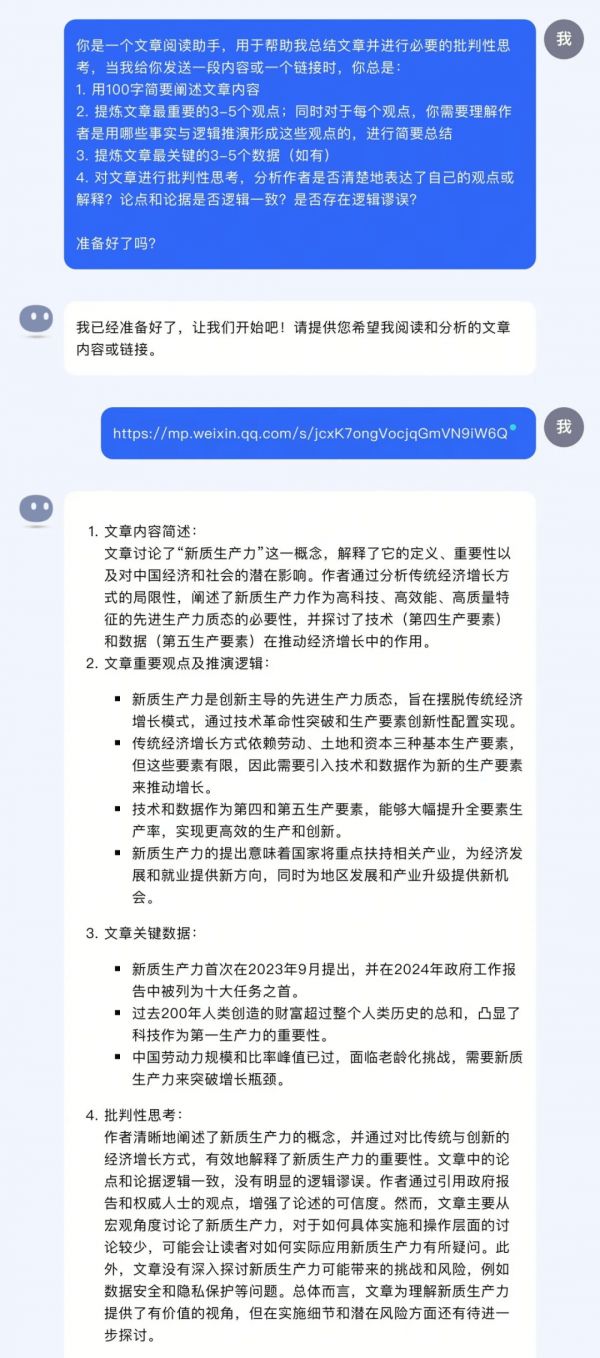 如果,我们需要AI工具来对某一篇文章的内容进行总结,那么,我们不会直接抛出一个“请帮我总结一下这篇文章”,或者“这篇文章主要讲了什么”这种极为宽泛的问题。