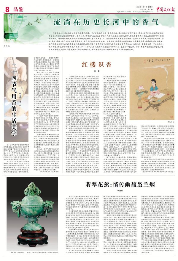 《红楼梦》是中国文学史上的璀璨明珠,也荟萃了丰富的中国传统文化元素。仅以源远流长的香文化而言,《红楼梦》中即直观生动地体现了我国古代繁杂多样的香文化及其在宗教和世俗生活中的广泛运用。甜香、幽香、清香、异香、冷香、暖香,还有群芳髓、冷香丸、茜香罗、沉香拐、腕香珠、旃檀香小护身佛……《红楼梦》中的香元素将贵族之家的优雅与奢侈表现得淋漓尽致。