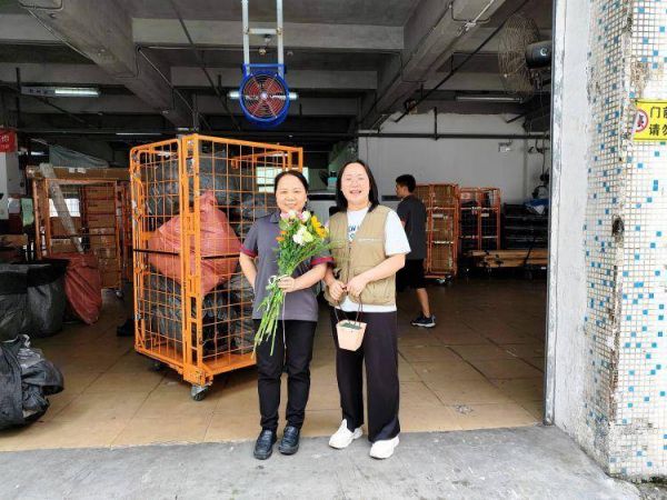 插花制作完成后,活动进入“走访慰问一线职工”环节,工会工作人员到辖区内企业走访慰问一线女职工们,为她们送上美丽的鲜花和插花花材,感谢她们在一线岗位上的辛勤付出,叮嘱她们遇到工作或生活上的困难可以及时向工会反映情况,工会是她们最亲切的“娘家人”。
