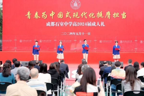 而在今天,“冠礼”正在以另一种极具青春与朝气的形式得以传承。5月11日,成都石室中学文庙校区举行高2024届学生成人仪式,年级全体学生、家长和老师齐聚一堂,共同庆祝这一神圣庄严而又意义非凡的日子。