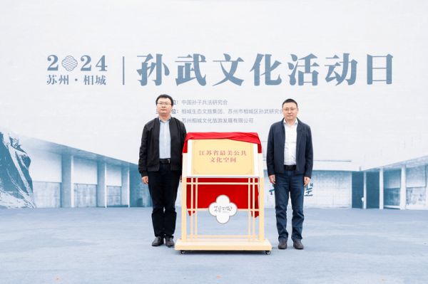 相城生态文旅集团总经理刘永健、苏州市文化广电和旅游局公共服务处副处长李祥为孙武纪念馆揭牌“江苏省最美文化空间”。“最美公共文化空间”由江苏省文化和旅游厅实施打造,是以城乡公共空间为载体,围绕公益文化服务供给,融合地域特色、“主客”共享和新型文化业态。
