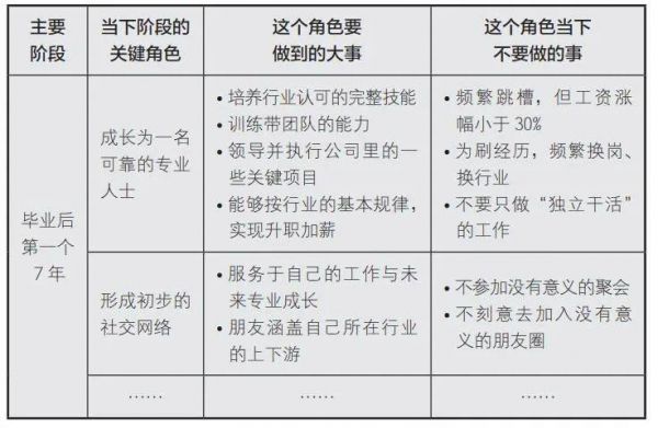 当然,类似这样能指导人们在某个阶段到底要怎么取舍的规律还有很多,每一条规律都是人生智慧。我们不可能掌握所有规律,但是可以用读书、请教、自己总结等方法更高效地收集、寻找规律。