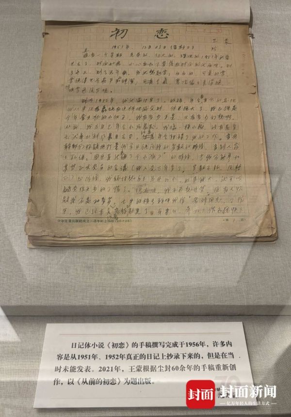 《初恋》手稿(翻拍自中国国家博物馆“王蒙文学创作70周年展”)