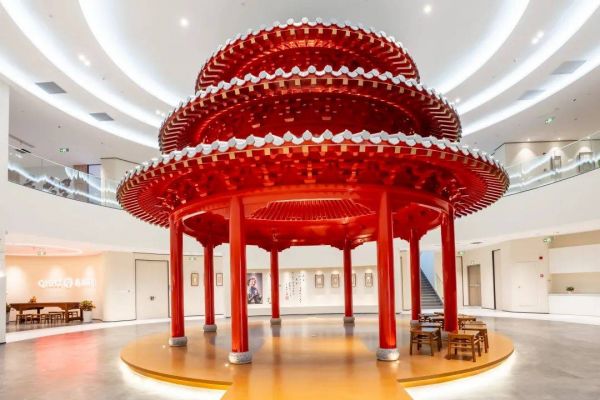 让传统美学飞入寻常百姓家毫艺术中心位于七宝镇蒲溪科创园A栋的3楼和4楼,是秦汉胡同历时20年重点打造的艺术空间,集艺术馆、零展厅、数字展厅、影视展厅、沙龙雅集等模块于一体。记者在现场看到,3楼中庭立着一座古色古香的双雁楼,既有古代建筑元素,又有现代技术的应用,周边的展厅环绕着中庭的双雁楼呈圆弧状依次排开。