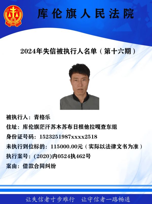 库伦旗人民法院曝光失信被执行人名单【第十五期】
