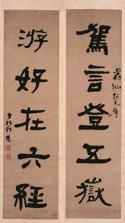 何绍基隶书五言联“驾言登五岳,游好在六经”。湖南省博物馆藏。图片来源:文汇APP