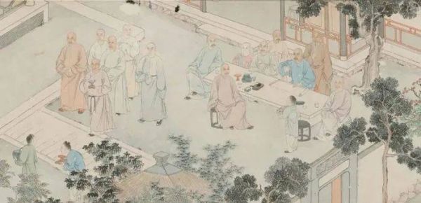 何蝯叟顾祠春禊图(局部)。吴俊(清),纸本。图片来源:澎湃新闻