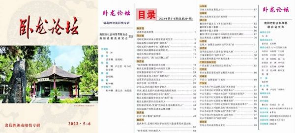 2024年2月19日,公众号南阳社科发布刊发《市社科联《卧龙论坛》“诸葛胜迹南阳情”专辑印发》,宣布:日前,由市社科联、南阳诸葛亮研究会编撰的《卧龙论坛》“诸葛胜迹南阳情”专辑(2023·5-6期)印发。