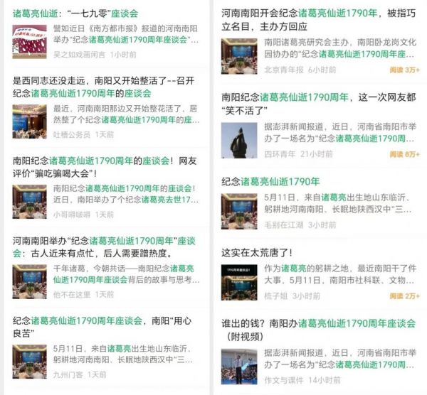 南阳纪念诸葛亮仙逝1790周年的座谈会!网友评价“骗吃骗喝大会”!