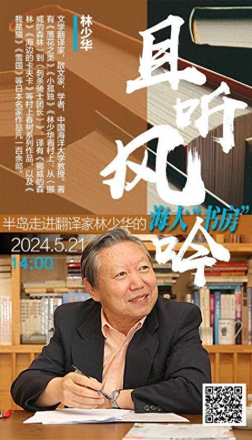 最近,“林译本”村上春树精装修订系列第二批上新,《舞!舞!舞!》《国境以南太阳以西》《奇鸟行状录》《斯普特尼克恋人》《海边的卡夫卡》等五本作品如约与大家见面,林少华版“村上”又成为高热度话题。从《挪威的森林》《海边的卡夫卡》《刺杀骑士团长》等村上系列作品到《心》《罗生门》《失乐园》《在世界中心呼唤爱》……林少华翻译的日本名家作品已有百余部,他也被中国村上迷称作站在村上春树背后、“最接近村上文字”的男人。他不但在全国各大高校、书店讲座受欢迎,微博上也拥有343万粉丝,他在B站不到10分钟的视频也成为热搜……这次,半岛全媒体把访谈搬到了中国海洋大学的“林少华书房”,并邀请作家、学者刘宜庆,共同与文学翻译家林少华对谈。