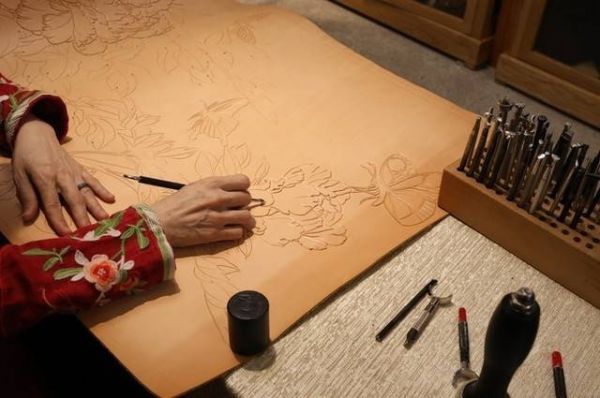 非遗传承人、皮雕工艺师黄梅林,一位凝聚心神、锤炼技艺的工匠,生于1972年,师承非物质文化遗产传承人皮雕工艺师周传炳。皮雕,是以皮革为雕刻材料分类的一种雕刻技艺,早在唐代就一度盛行。这一项费时费工的工艺,需要多道工序加持,考验的是技艺,更是恒心。指尖方寸,每一笔刻画、每一下敲打,每一次推拉,看似简单的动作,却要重复成千上万次,倾注的是心血,完成的是艺术。