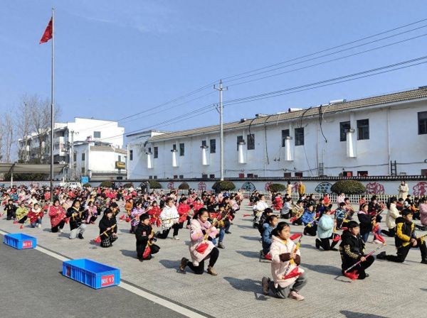 柿树岗乡中心校课间操现场。