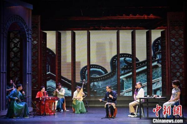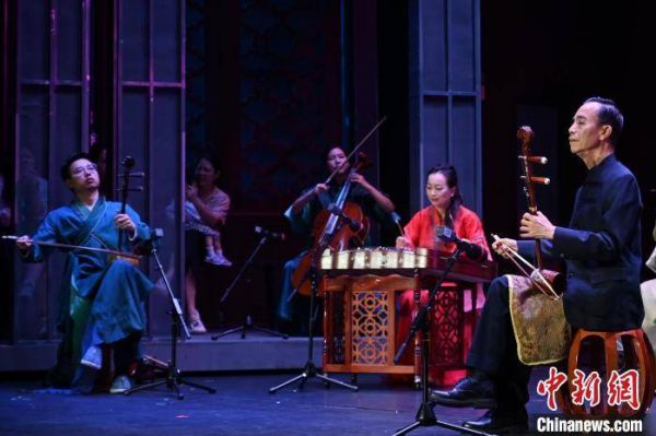 5月24日,“韵律中的岭南情怀——何克宁广东音乐大师课”在广州市荔湾区粤剧艺术博物馆举办,何克宁(右一)与广东音乐曲艺团的艺术家们演绎经典广东音乐曲目。 陈楚红 摄