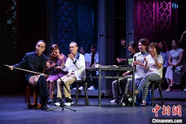 5月24日,“韵律中的岭南情怀——何克宁广东音乐大师课”在广州市荔湾区粤剧艺术博物馆举办,何克宁(左)介绍经典广东音乐曲目。 陈楚红 摄
