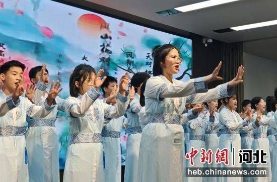 中新网河北新闻5月24日电(韩聚晓 朱涛 吴婷)近日,石家庄市赵县石塔中学举办了一场主题为“经典润心田,知行传文明”的国学诵读活动。活动中,学生们诵读了《木兰诗》《论语》《少年中国说》《三字经》等国学经典,以饱满的热情和精彩的表演,展示了中华文化的魅力和力量。(完)