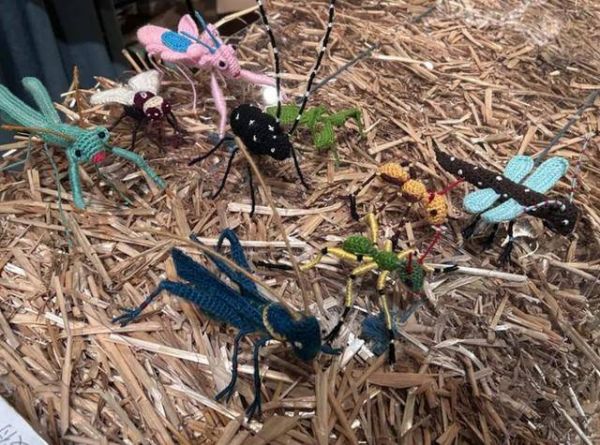 其中,刘景兰奶奶和她手工编织的小动物们是展厅里的人气王,背着“乌龟壳”的“蜜蜂”叫“闺蜜”,马背上落蝇“马上赢”,还有“九尾狐”、拟叶螳螂等,每个手作都有一个自己的小故事,观众们也纷纷被这些可爱的手作所吸引。