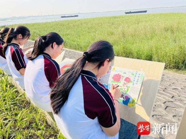 在蓝天白云的映衬下,母亲河长江更加的美丽动人。孩子们来到江堤上,拿出画板,用心描绘着自己心目中的长江画卷。看着绵绵长江水,大家一起观察、感受、怀抱大自然,用眼睛和画笔,绘画出长江的波澜壮阔,长江的碧水盈盈。活动结束后,孩子们的作品展示在新峰美术馆,向更多的人传递保护长江生态环境的理念,让更多的人了解长江、爱护长江,共同参与到长江大保护的行动中来。