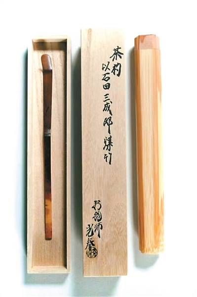 前阵子朋友为了准备茶会,把家里珍贵的道具都翻了出来。我打开其中一个,盒子上写着“大德寺山门古材”,不解。追问之下,原来是日本京都大德寺使用数百年的山门,更新换代惨遭淘汰,拆下来的一部分便被本流派家元收了去,或者做成茶入,或者做成茶杓。