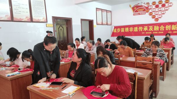 近年来,为有效保护与弘扬苗绣文化,城步成立苗绣文化研究所、苗绣开发有限公司,建立长安营苗绣培训基地,以苗绣为主导产业,集专业苗绣设计、制作、销售融合为一体,将传统文化与市场运作巧妙结合,帮助农村留守妇女增收致富。从2016年开始,城步苗绣非遗传承人伍前金带领她的城步苗绣文化研究所团队,连续9年深入城步偏远山区培训农村留守妇女学苗绣,共培训了2000余人,解决在家中就业人数达400余人。(杨东军 陈功伦)