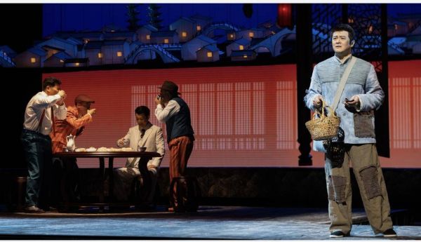 剧中的“朱自冶”由著名京剧表演艺术家关栋天饰演,他在有理有趣中赋予人物鲜活灵性,人物形象不仅有冷幽默,也有时代赋予的或骄傲或谦恭的特质。从舞台美术上来看,该剧营造了极具地域特色的视觉元素,既有江南建筑的粉墙黛瓦,也有各具情态的人物造型、与情节相配的背景幕布、随节奏和气氛变化的色彩色调等。多维的视觉构图制造出舞台上的烟火气,让观众既觉得置身戏中,又能出于戏外。