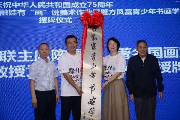 著名画家方凤富为北碚区两江小学授牌“方凤富青少年书画学校”。北碚区两江小学供图