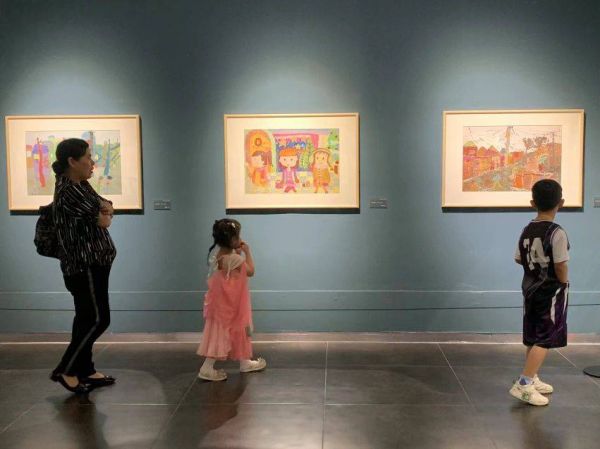 在“六一”同时揭幕的还有“美育硕果”——少儿色彩教学成果观摩展,展览选取了105 名4 -14 岁长沙孩子的195幅彩色画作。