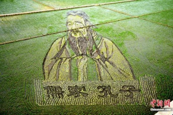 《儒家孔子》稻田画。仲雁铭 摄