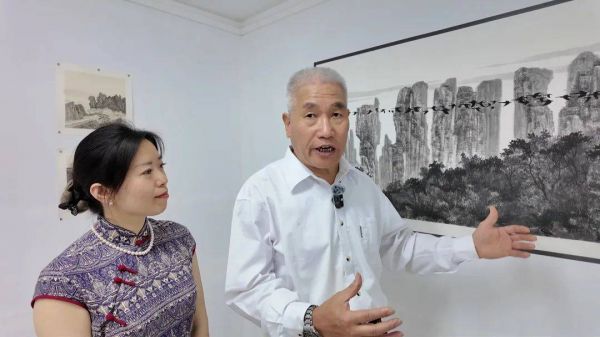 蔡林园的教学风格不仅体现在技术上的严格要求,更在于他对学生人格与文化素养的培养。在他的引领下,许多学员经过多年的学习,已经达到了相当高的艺术水平。学员秦女士表示,她因喜爱绘画而走进书院,并被蔡林园老师的作品深深吸引。经过多年学习,秦女士不仅掌握了扎实的绘画技巧,更从蔡林园的国学知识中受益匪浅。她感慨道:“蔡老师国学知识深厚,精湛的绘画技艺更是让人钦佩,他的作品气势磅礴,细腻程度令人叹服,能成为蔡老师的学生,我感到十分自豪。”