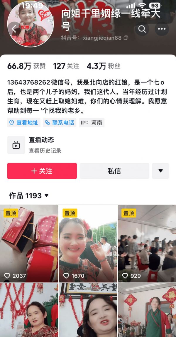 这样的“红娘”远不止开封王婆一个,在抖音、快手乃至小红书等社交平台上,搜索“红娘”“相亲”等关键词,就会看到大量的“红娘”账号,有的还贴心的标注好地区。