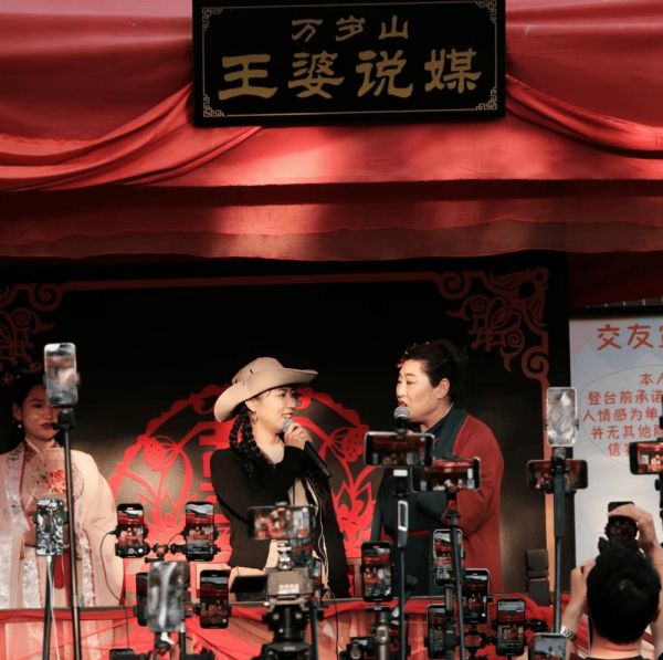 有婚姻簿和红线这两样神器,月老可以做到千里姻缘一线牵,而在现代,红娘和媒婆们凭借网线也能速配姻缘。前段时间在网络上走红的开封万岁山武侠城景区里的王婆,一手速配年轻人的绝活,让她被称为“月老手底下的销冠”。