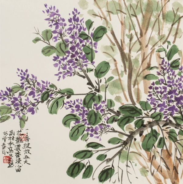 《丁香绽放五月天,老艳浓香沁心田》中国画 荆桂秋