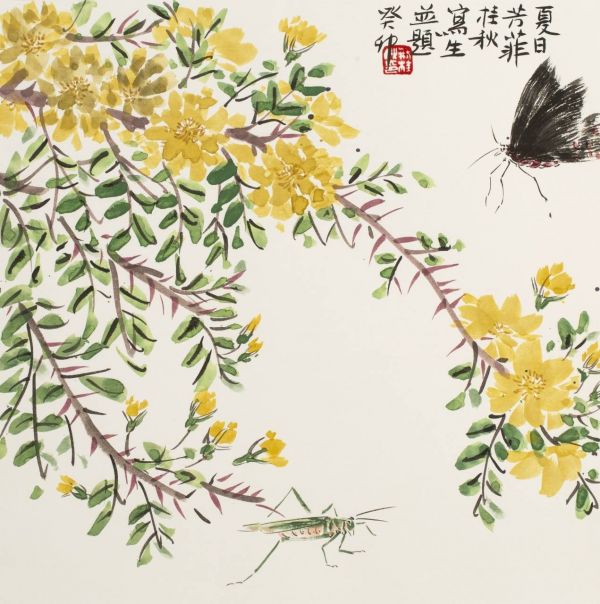 我常常对景写生,徜徉于自然美景之中,迎风摇曳的山花、飞舞的彩蝶、跳跃的草虫……生动的美景让我激情四射,画意勃发信笔写意,常常下笔有如神遇,用笔愈显轻灵飘逸,墨彩愈发润美华滋,作品新意迭出。随着自身学养的沉厚、眼界的开阔、创作的深入、境界的升华,对美的感受、捕捉的视角也会愈加独到新奇生动感人。保持高度的求新自觉是画家应有的本色,艺术风貌多姿多彩,才有美的价值和时代的认同。