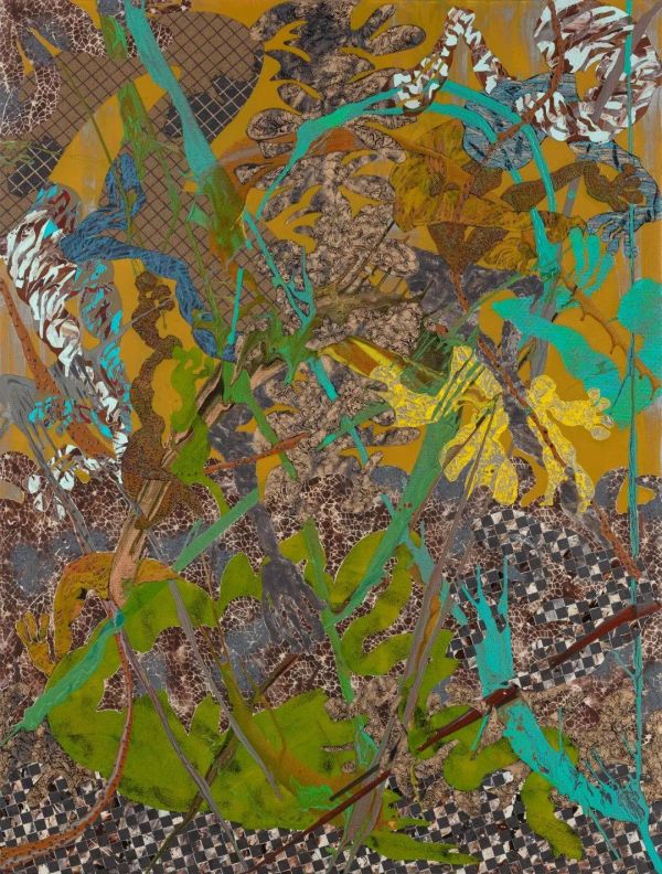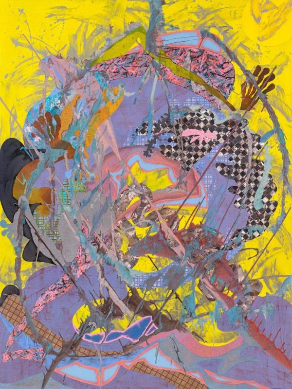 秋里黄,2021,丙烯、油粉棒、图像转印、布料,196x159cm
