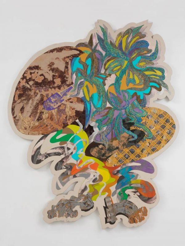 葛雅静拥有对色彩的敏锐判断。空间入口挂着的异形作品,是她 2021 年的创作。不规则的边缘和分明的色块、线条,自带强调感,帮助观众捕捉部分又感受整体。