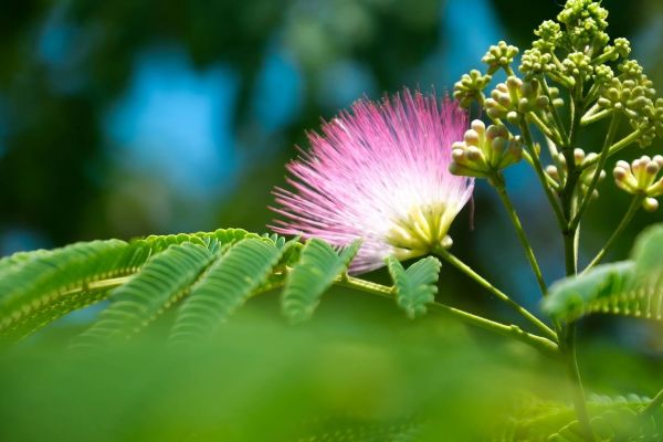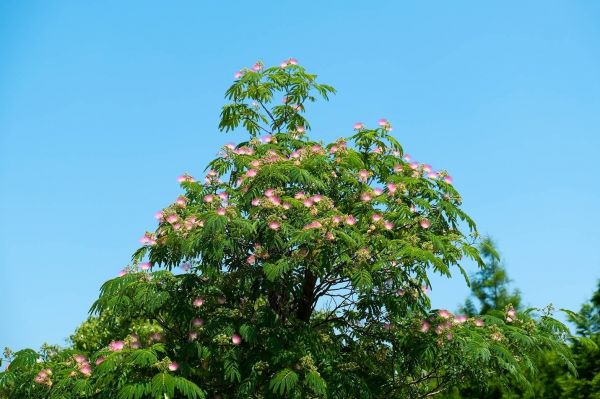 一树合欢开,红云倚翠叶,风轻吹,暗香浮动