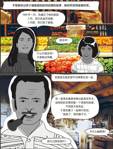 她听父母讲他们结婚的经历:1月认识、2月结婚、3月就来了美国。