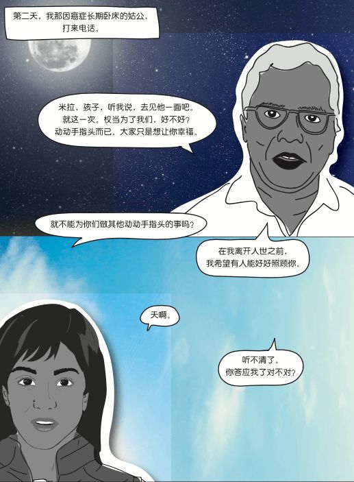 在这些越来越多、越来越难以回答的问题中米拉意识到,她从小被教育要信仰的美国和她身处的现实美国之间,存在着巨大差别,她甚至开始变得和小直一样迷茫。于是米拉在打印纸上画下了自己和小直,贴在了迈克尔·杰克逊的专辑封面上,对话产生了。而身为读者的我们,就像点开了实名投稿的“偷听bot”,在地铁、街道、房间、飞机、汽车、酒吧、山川、海洋、星空中听她与父母、孩子、丈夫、朋友、亲人对话的声音,在回忆与当下的碎片中,慢慢还原出一个印度-犹太裔的美国家庭。