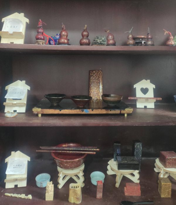 在一处标注“叶子作品”的展柜前,只见一件件用叶子做成的工艺品创意新颖、精巧别致,装饰、摆件、小道具、书签等应有尽有,雕刻、临拓、涂染等各种艺术手法构思巧妙。