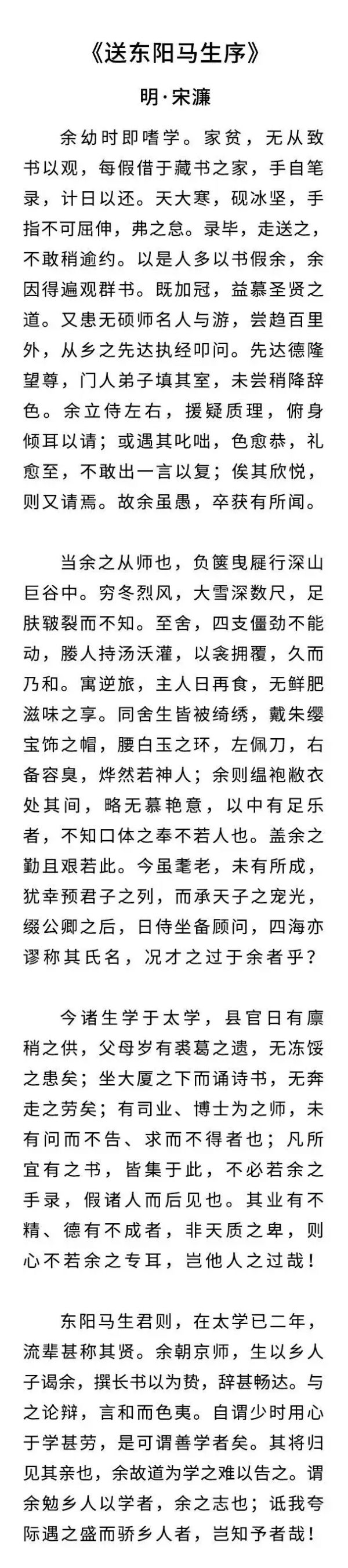 有人说,因为《送东阳马生序》,是一篇“现代版穷人奋斗指南”。