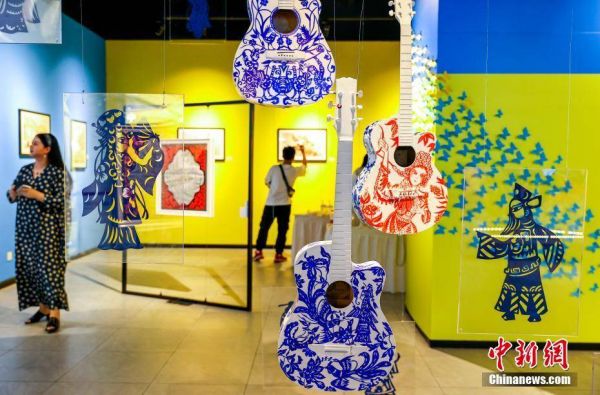6月7日,观众参观在湖北武汉凯德西城举办的《武汉·纸墨印象》中法跨国双人艺术展。此次展览由中国艺术家涂颖慧与法国艺术家皮埃尔·康努乐联袂共创,他们将水墨和剪纸这两种中国传统的艺术形式结合,并在创作中融入他们当下对艺术的理解,从全新的视角诠释对武汉这座城市的印象,展现中法艺术共融互通。张畅 摄