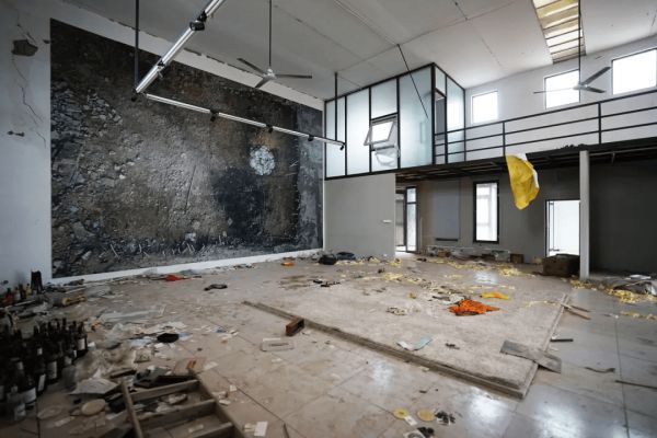 艺术家拍摄了拆迁后的艺术区废墟照,放在同区域内、废弃掉的前工作室空间里(半拆毁状态)。同样是改变注视关系,把散乱的现实、在意识上提炼成“作品”,提请观者观看一种升华过后的感伤(不动声色地呈现感伤),作品自身在情绪上饱满、合理;但,这种表现方式本身,无疑受是美术史知识启发的。