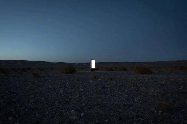 “2023年8月12日,艺术家刘耀华在中国西部的无人区竖立起一块由太阳能供电的空白广告牌。一年之内,这块广告牌持续对外开放合作,对象不限,每次更换内容都由艺术家亲自前往实地操作。”