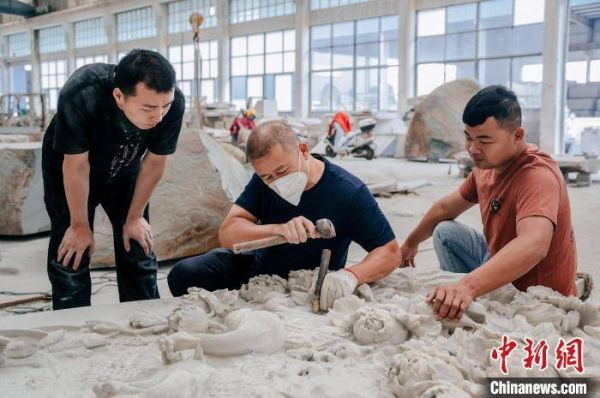 在惠安县豪翔石业的石雕工坊中,锤击石块的声音不绝于耳,石屑飞舞间工匠们手中的作品逐渐成形。