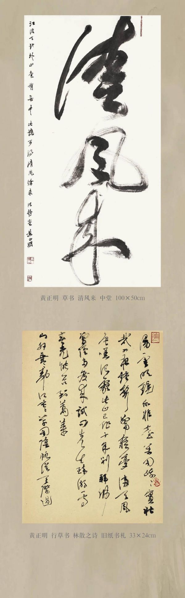 黄正明的书法,结字、行笔、章法都有自己的方式,外在的形态有自己明显的特征,辨识度很高。他长期磨练形成了一套自己完整的书写模式,胸有成竹,情动于中,文形于外,在此基础上,达到苏东坡所说的“文理自然,姿态横生”。自然快意的书写,使得他的作品元气淋漓,焕发出生命的魅力。深厚的文化积淀,又使得他的书法不落窠臼,超然脱俗。