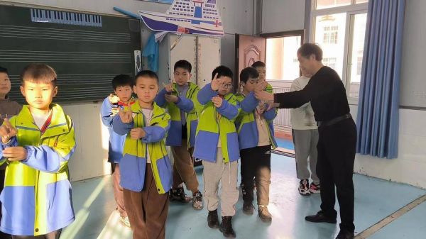 6月5日下午,在乐至街小学的舞蹈室,江依红正与学校舞蹈老师交流戏曲技艺,做好授课前准备工作。下课铃响起,十几名学生来到舞蹈室,在老师的指导协助下穿好戏曲服装。教学中,江依红详细讲解戏曲动作要点,包括手势的形状、身体的姿态等,并通过示范来让学生直观地看到正确的动作。
