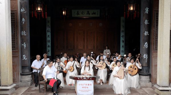广州番禺的沙湾古镇,是广东音乐发源地之一,诞生了《赛龙夺锦》《雨打芭蕉》等名曲。这里常有邻里街坊互组“私伙局”,演奏广东音乐。2013年成立的沙湾广东音乐研习社,吸引了众多爱好者加入,至今已坚持11年。