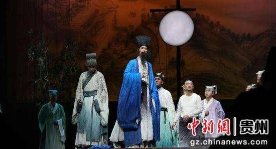 中新网贵州新闻6月11日电 (记者 张伟)端午假期,贵州省话剧团原创大型历史话剧《此心光明》在贵阳上演。该剧通过“诗化风格、诗性品质”的新样式,将写实和写意相结合,舞美、灯光、音乐、表演等多方面尽显古典艺术的空灵之美,自由之美,诗意之美。话剧让观众从全新维度了解王阳明,感知阳明精神的时代意义。