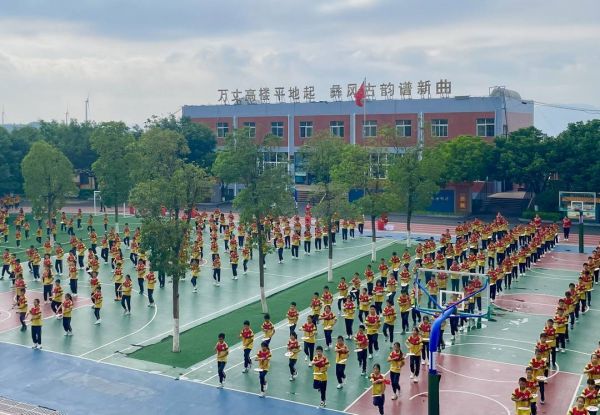 这套课间操名为《彝风鼓韵》,是根据当地颇具传统民族特色的俚濮彝族“羊皮鼓舞”改编而来。2011年,“彝族羊皮鼓舞”被列入第三批四川省非物质文化遗产名录。学校以彝族打跳的基本动作为创作元素,结合当地民间老艺人的舞蹈表演,融合非遗传承人讲述的文化历史,历经数次版本迭代。