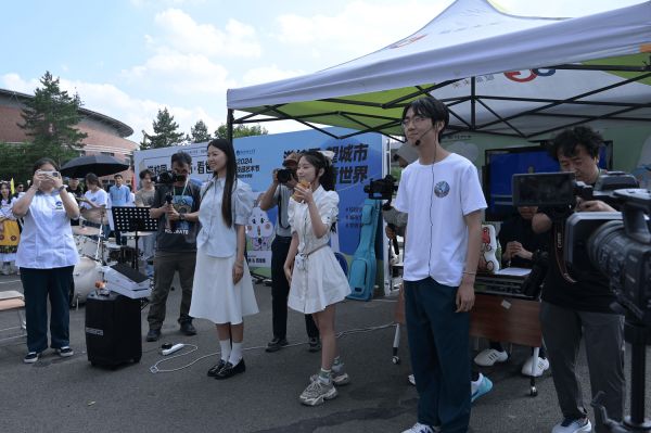 从校园出发,面向城市,走向世界,是国际艺术学院展区的设计思路。师生们通过动静结合的方式,将视觉传达设计、播音与主持艺术两个专业特色融入到学校、长春乃至世界的发展进程中。“一通和”主题设计展是视觉传达设计专业2024届毕业生燕钰的毕业作品,也是他献给长春的一个毕业礼物。“作为一个安徽人,我在长春这个城市学习生活了四年,对我而言,它已经不只是一座城。我希望用自己的专业知识去宣传和推广长春文化,去表达和展现我对这座城市的热爱。”在展区的“吉外直播间”里,播音与主持艺术专业大一学生周秀泽正在表演原创快板,“希望借助传统曲艺表演艺术讲述吉外近30年的办学历程,传递‘会通中外、砺志敦材’的校训精神。”