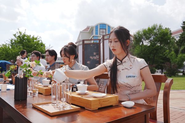 国际文化旅游学院展区,同学们演绎中国茶艺